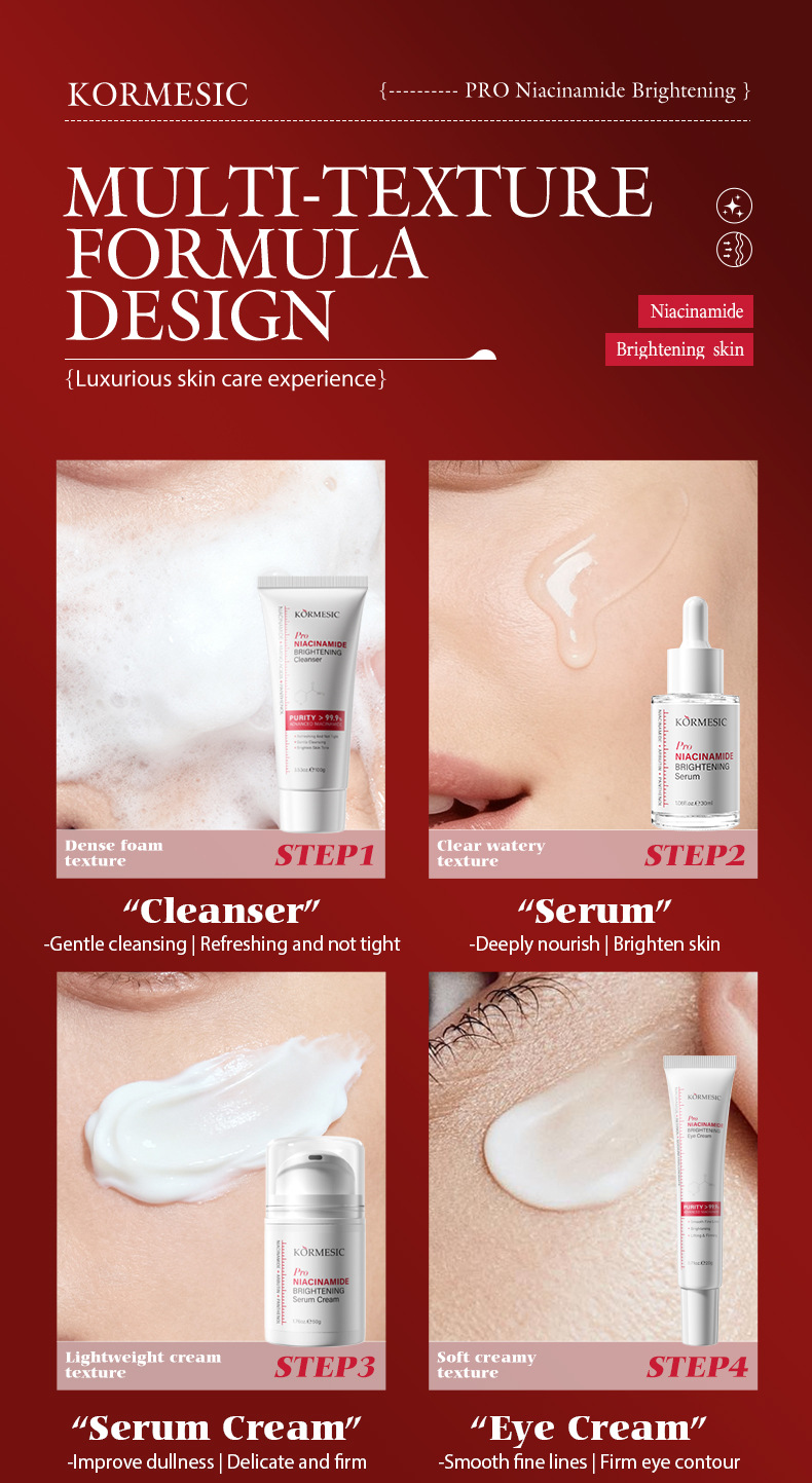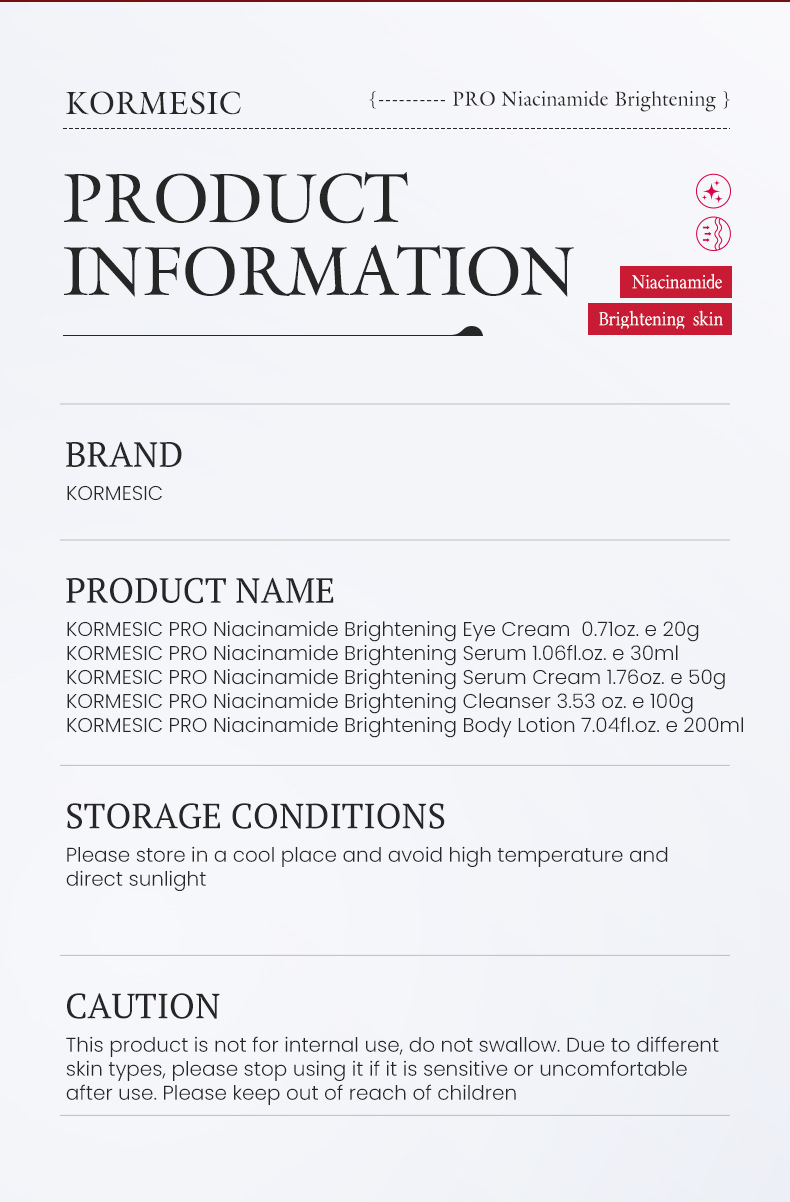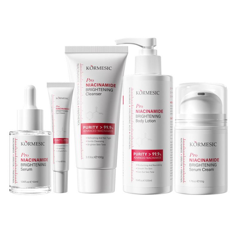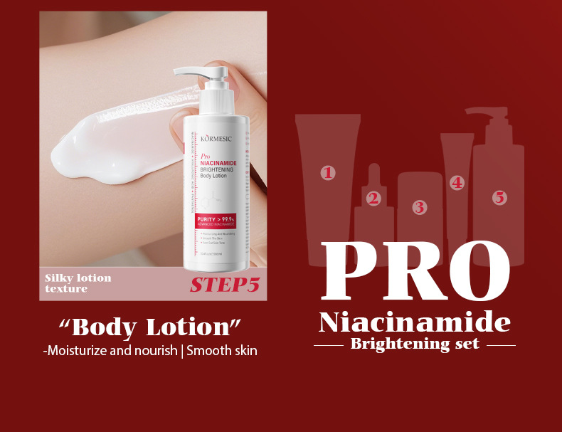 Body Lotion: Enriched with brightening agents for even skin tone on the body.